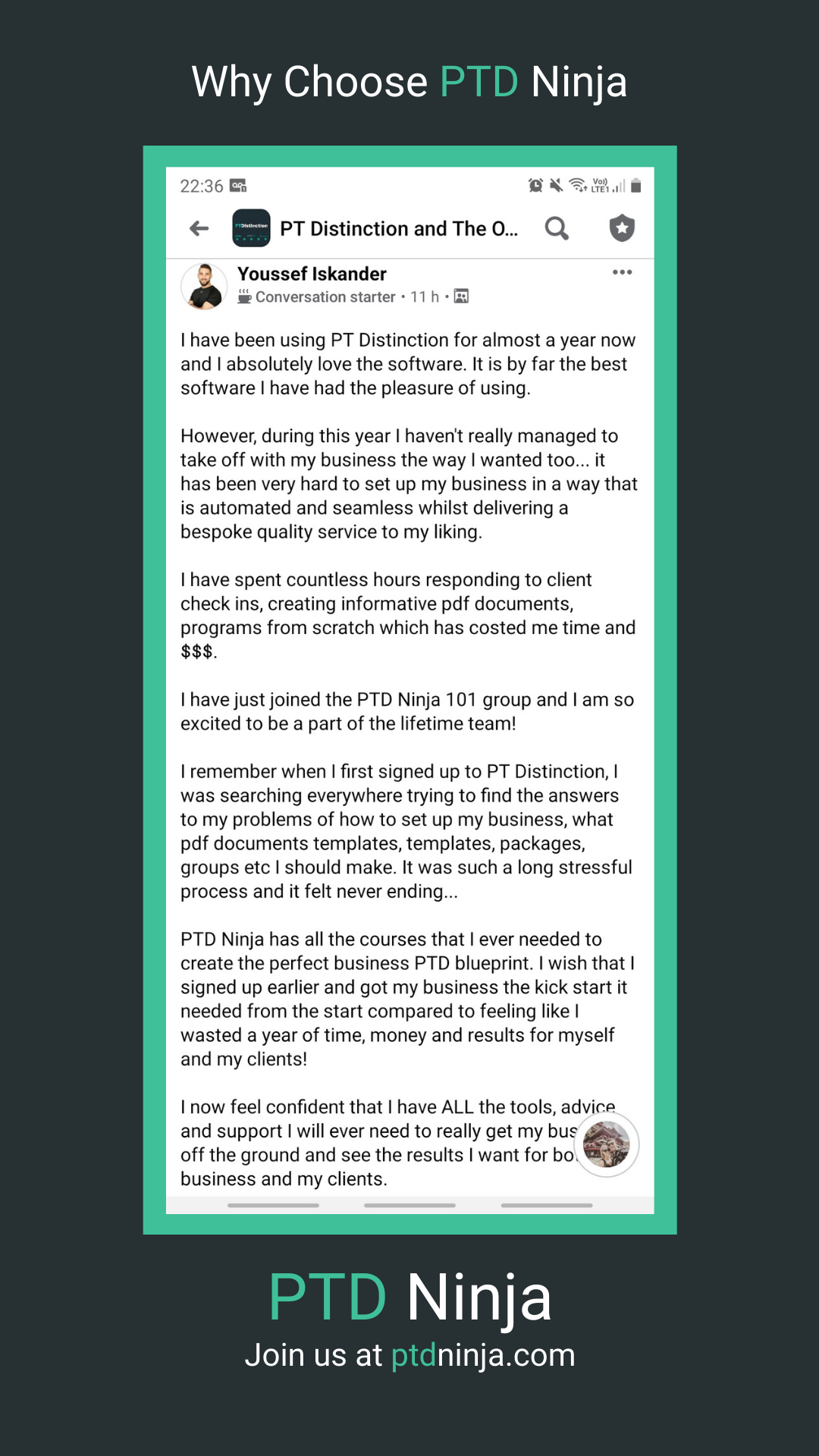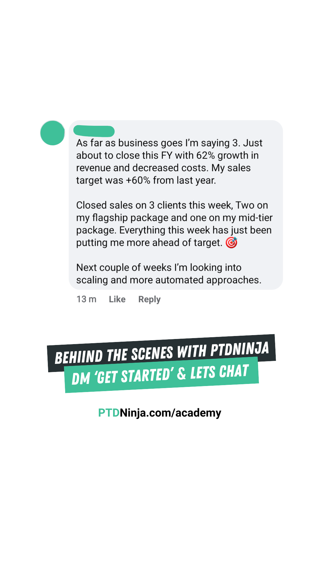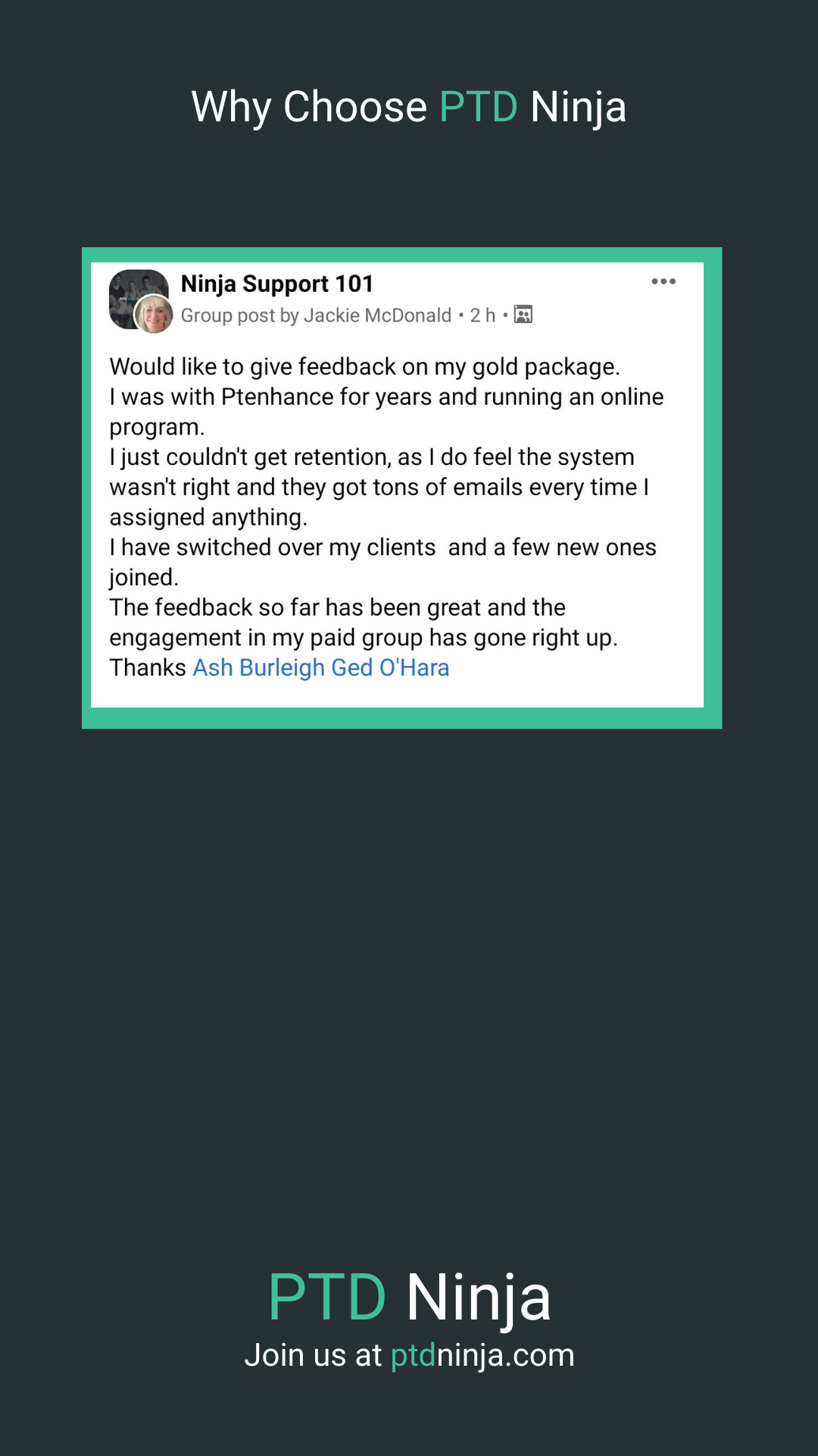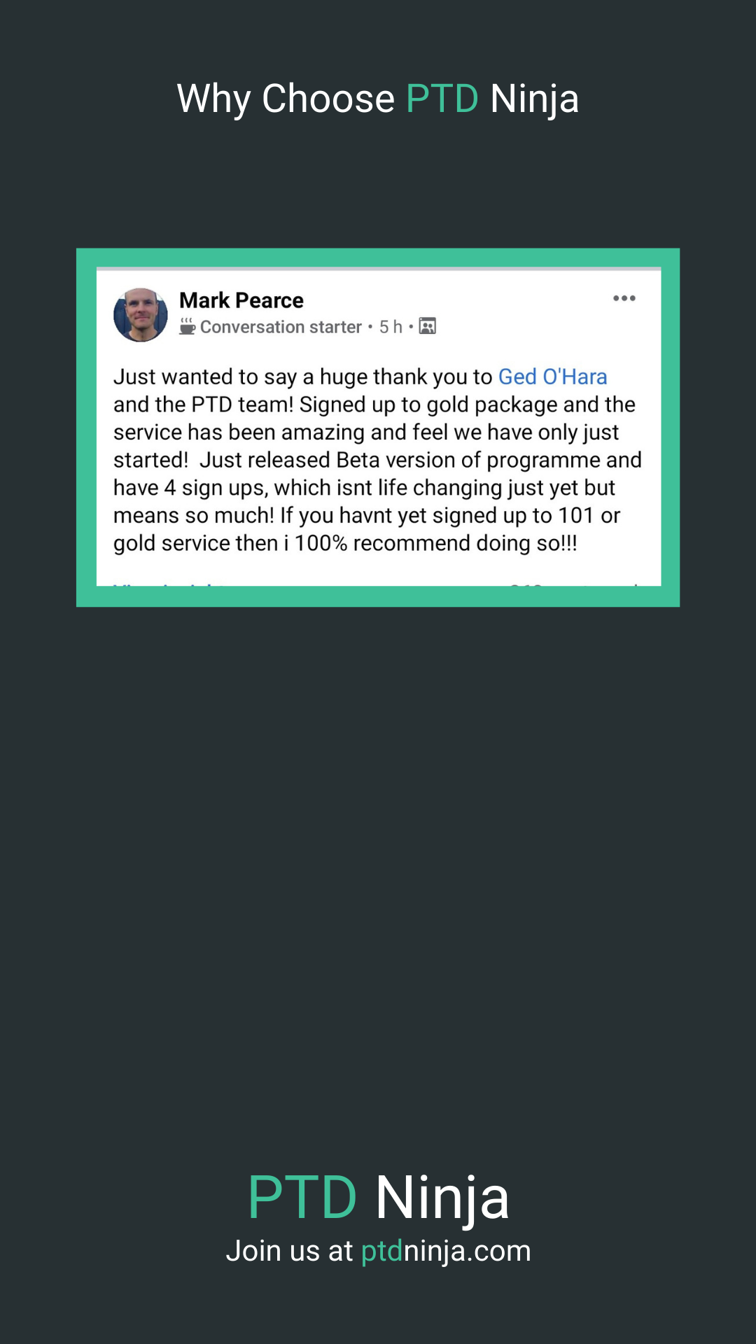 So, why settle for less? I won't palm you offer to a 'coach' or 'team member' with PTD Ninja, you work direclty with me.